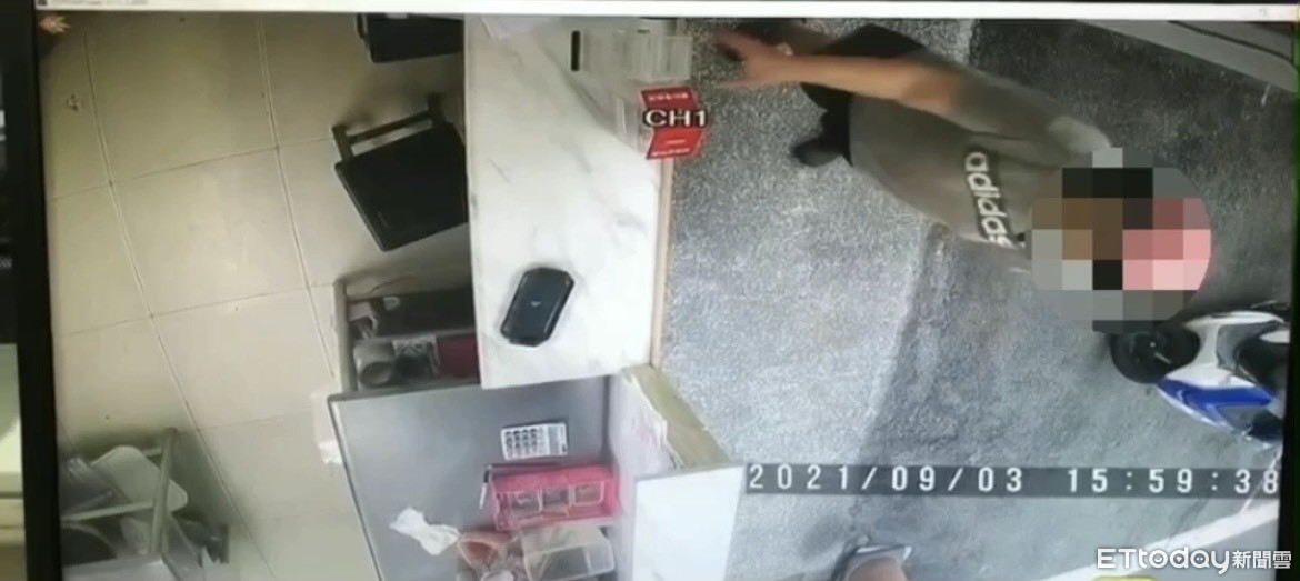 ▲女竊賊爬上櫃台偷錢 。(圖/記者洪靖宜翻攝)