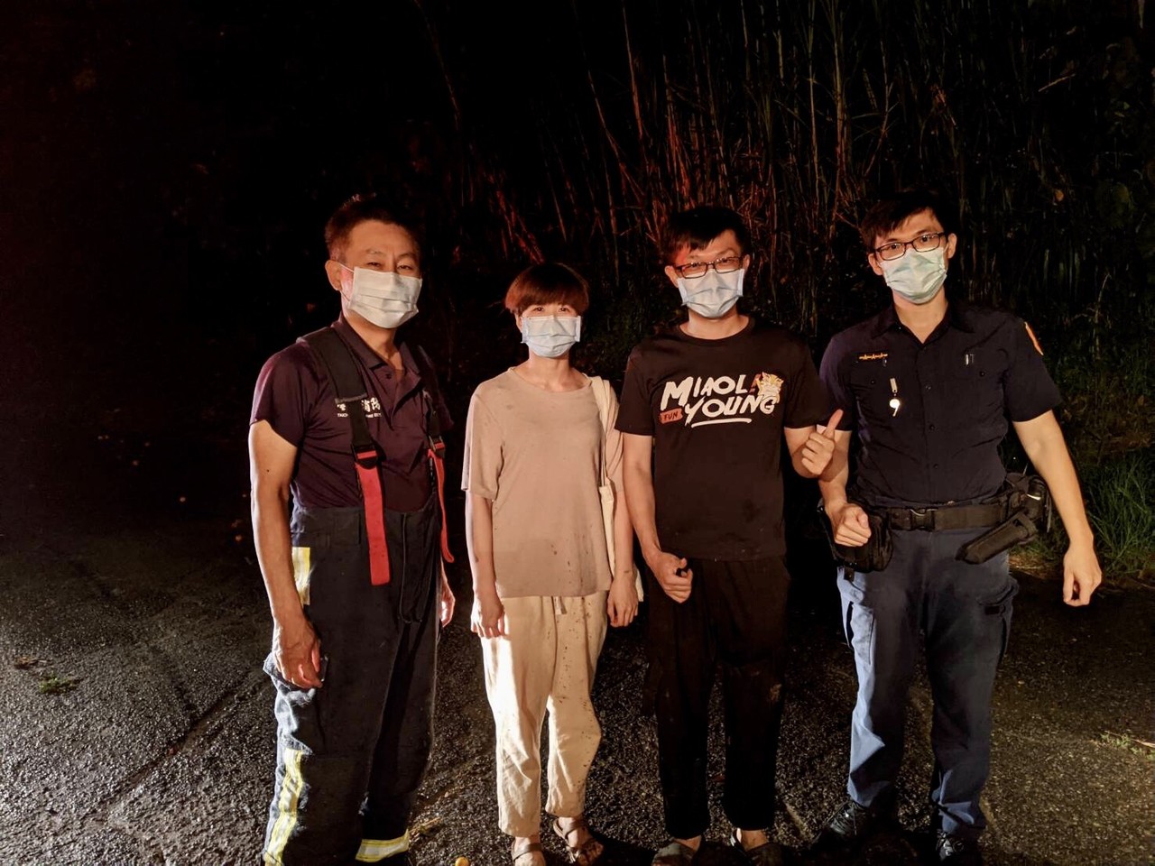 警員陳浩霖依據報案內容與手機定位顯示位置,順利尋獲受困的陳姓男子與友人,經和消防隊員合力才將車輛推出泥地,人車平安脫困,並指引陳男正確的行駛方向,陳男對警員與消防隊員熱心協助深表感謝。