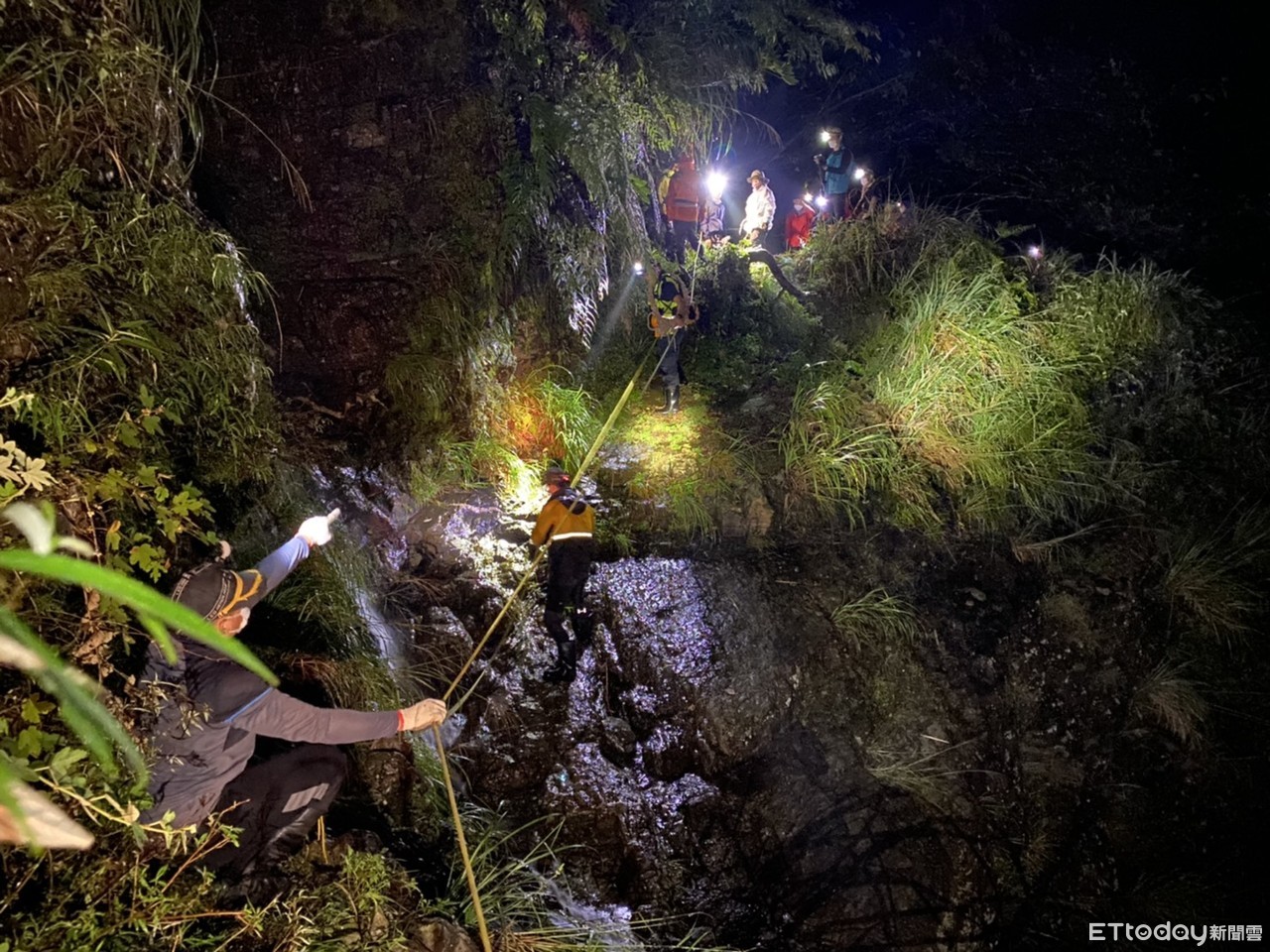 ▲宜蘭搜救人員摸黑架繩索,助跌傷山友通過高5米、長米公尺瀑布山壁。(圖/記者游芳男翻攝,下同)