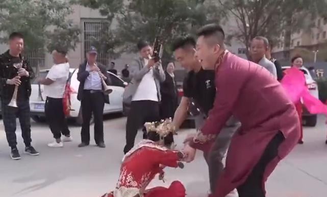 陝西榆林市一名新娘穿著大紅色古禮服乘坐八人大轎熱鬧現身,新娘下轎時被伴郎圍住,眼看著就要發生「婚鬧」事件,令人驚訝的是,這位新娘突然拔腿狂奔,連鞋都沒穿,圍觀眾人反應不及,只能帶著詫異的眼光看新娘跑走。過程中一度有位黑衣男衝上前要抓住新娘,卻被她俐落的身段甩開,最後,新娘順利跑進家門,阻止這場婚鬧的發生。