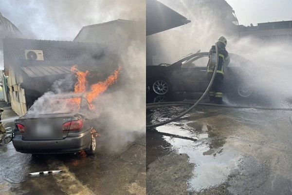 這起案件就發生在阿蓮區民族路一處民宅前,19日上午7時多,停在門口的車子燃起熊熊火焰,消防局出動8車14人前往搶救,將燃燒的車撲滅後,發現駕駛座有的余姓男子已經明顯死亡,火勢還延燒到住宅,導致門口的桌椅也燒起來,約一小時後將火勢控制撲滅。