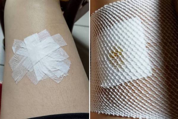 ▲女記者水電工父親以透氣膠帶貼傷口(左),翌日求助醫師處理(右)。(圖/翻攝自only臉書)