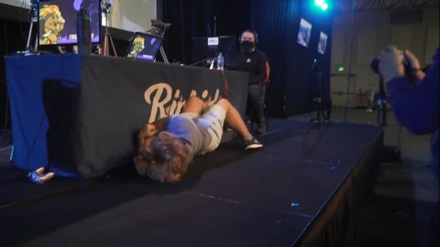 電競格鬥遊戲《Rivals of Aether》上週末在美國俄亥俄州舉辦為期3天的比賽,最終「CakeAssault」選手擊敗245名參賽者,一舉奪得冠軍寶座,當下他興奮的從椅子上跳起振臂歡呼,不過疑似因動作太大,導致肩關節不幸脫臼,讓他僅興奮短短幾秒,就痛苦的倒在地上,場面相當尷尬。