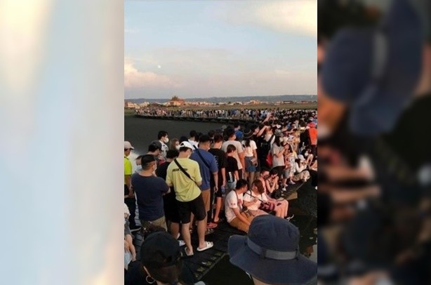 高美濕地湧現報復性出遊人潮,有民眾在臉書PO出驚人畫面,木棧道擠爆數百人完全無法通行,早已超過管制的691人上限,由於絲毫無法保持安全社交距離,網友紛紛嘲諷「是在過奈何橋嗎?」。警方也統計昨日至高美的人流約3500人,停車場9成滿。