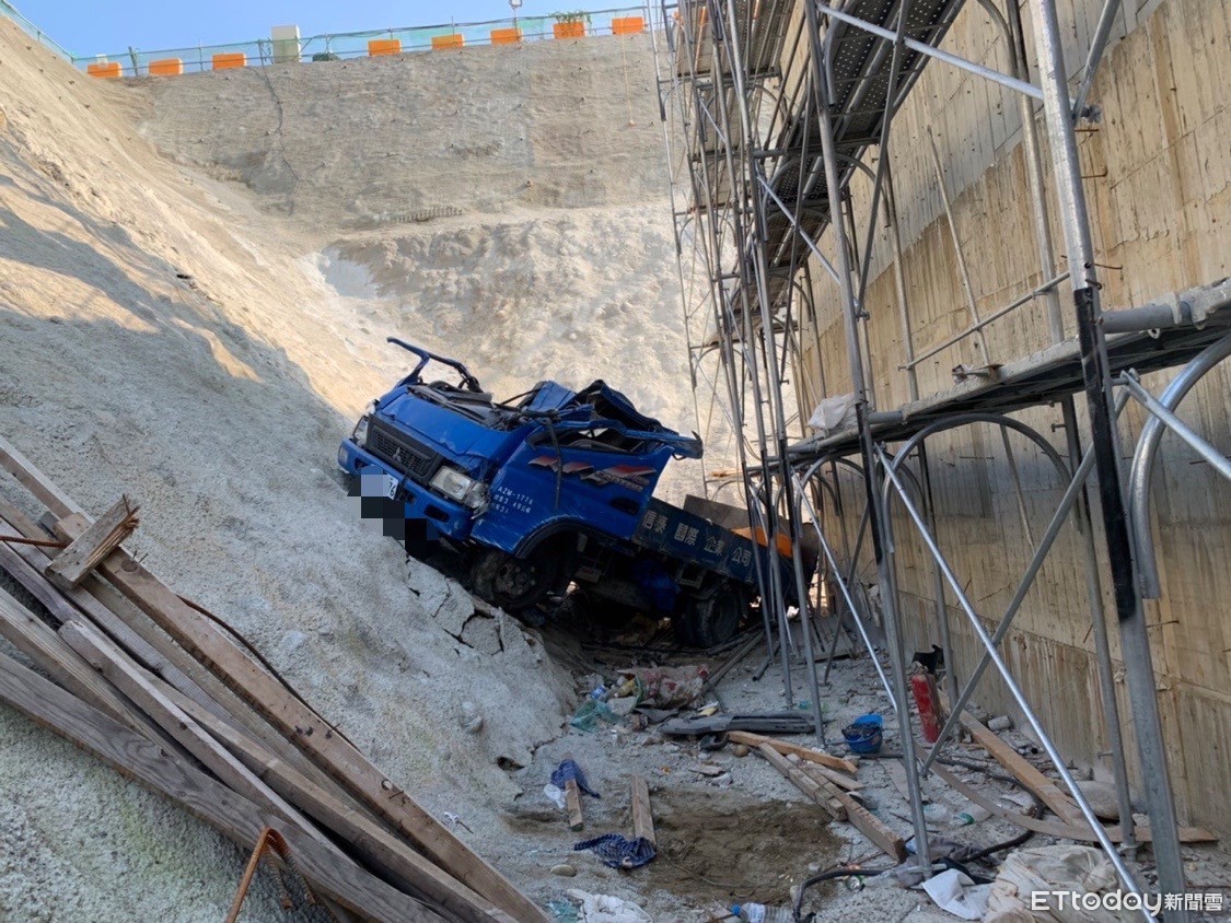 台中市北屯區20日下午2時許經貿東路一處工地發生工安意外,26歲蘇姓工人駕駛小貨車載運貨物時,不慎滑落一旁正在開挖地基的20公尺深邊坡,造成小貨車駕駛座幾乎全毀,蘇男頸部扭傷、大腿骨骨裂,幸無生命危險,目前已送往中國醫治療。