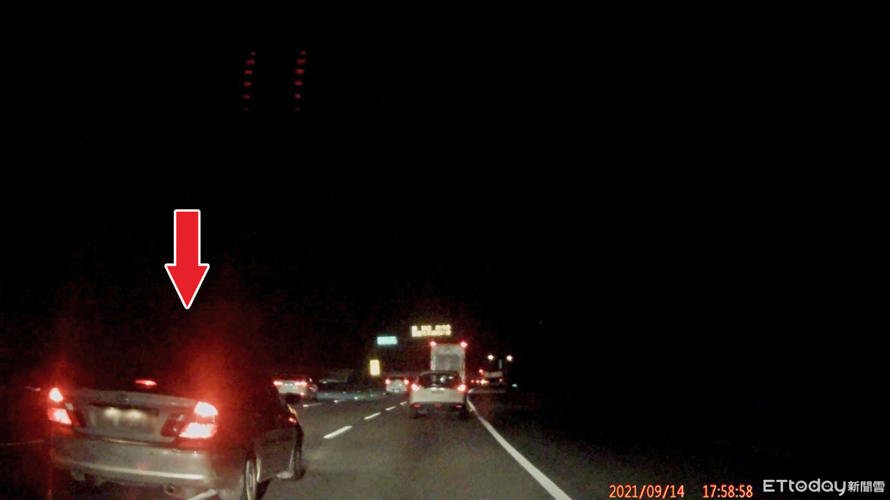 ▲雲林縣一名駕駛人於中山高北上台中路段遇到一輛銀色小客車偏移車道,按一聲喇叭示警後,疑似引起該輛車駕駛不悅,隨即緊跟逼車整整20多分鐘、約30公里路程。(圖/記者蔡佩旻翻攝)