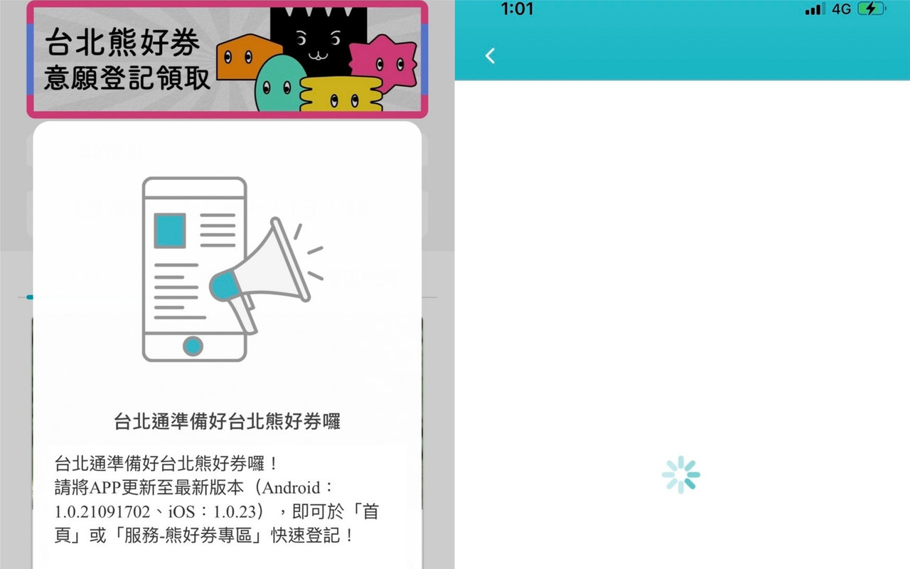 對此,台北市資訊局回應,因應「熊好券」需求,台北通APP於近日有更新版本,目前民眾使用APP若未自動更新,則會使用到舊版APP。
