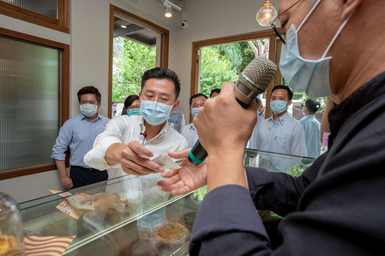 林智堅表示,為幫助受疫情影響嚴重之餐飲、小吃、商圈等店家,市府也推出200元五倍券兌換限量400元買爆券活動,400元買爆券為全台面額最小,一張50元共8張,盼振興效果擴及基層小販,民眾持買爆券可至公有市場、市集、商圈共18處至少2千家攤商及店家使用。