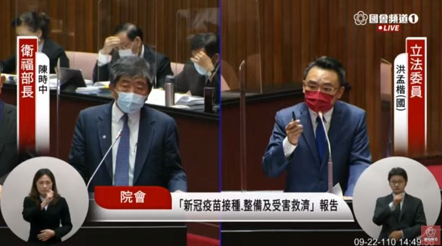 ▲洪孟楷質詢陳時中。(圖/翻攝國會頻道)