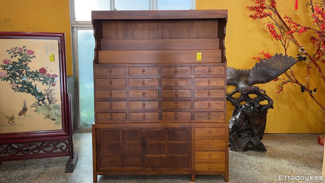 ▲台南市環保局藏金閣舉行大型家具拍賣,推出珍稀美品「檜木中藥櫃」、手作三抽櫃及兩輛自行車王,歡迎來競標。(圖/記者林悅翻攝,下同)