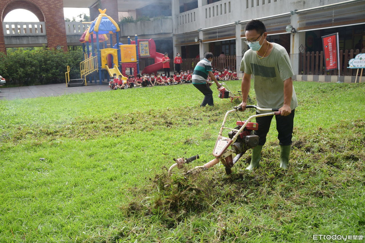 ▲社大與學校合辦幼童食農教育,將校園草皮變成農田(下同)。(圖/南投縣政府提供)