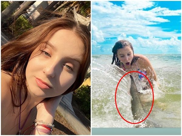 美國佛州少女克里斯汀娜(Kristina Lowe)前往海灘遊玩,在水中擺出性感姿勢,請好友拍攝網美照,卻突然感覺腿側有一陣粗糙觸感,竟是一尾長達4英尺(約1.2公尺)的鯊魚正在「磨蹭」。她立刻嚇壞尖叫,激烈反應也讓海水噴起,濺得全身濕,驚恐瞬間正好被鏡頭捕捉下來。