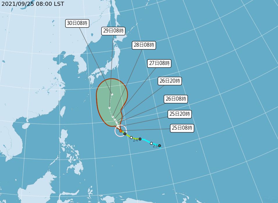 ▲蒲公英颱風持續往日本南方海面移動。(圖/氣象局)