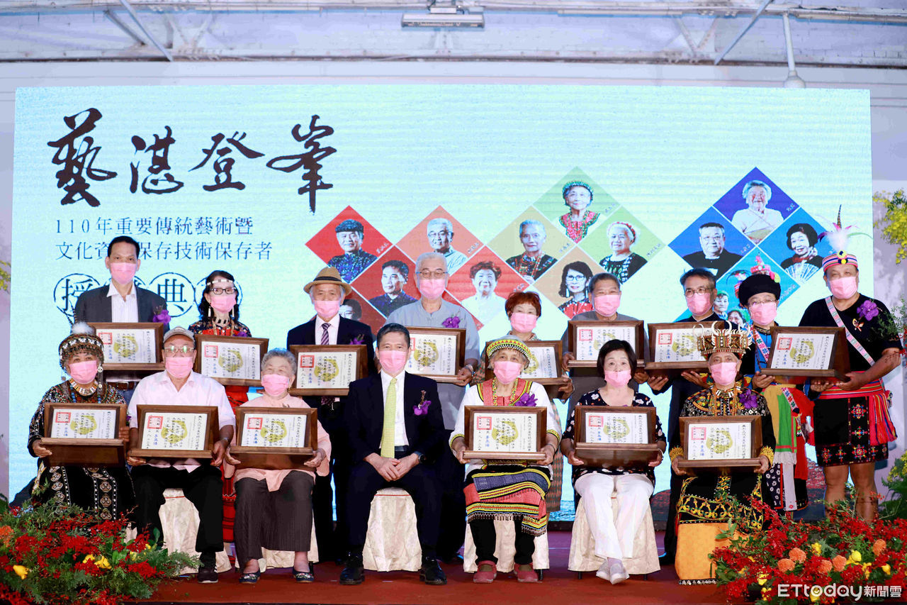文化部110年度認定重要傳統表演藝術「恆春民謠」陳英、「亂彈戲」王慶芳、彭繡靜、「阿美族馬蘭Macacadaay」杵音文化藝術團;重要傳統工藝「噶瑪蘭族ni tenunan tu benina香蕉絲織布」嚴玉英、「排灣族Kinavatjesan傳統刺繡」陳利友妹、「排灣族tjemenun傳統織布」許春美、「賽德克族Gaya tminun傳統織布」張鳳英、「泥塑」杜牧河、「剪黏」陳三火、「漆工藝」黃麗淑、「玉雕」黃福壽、「傳統木雕」蔡德太,以及重要文化資產保存技術「製鼓技術」王錫坤等人間國寶,代表國家對文化資產的重視。