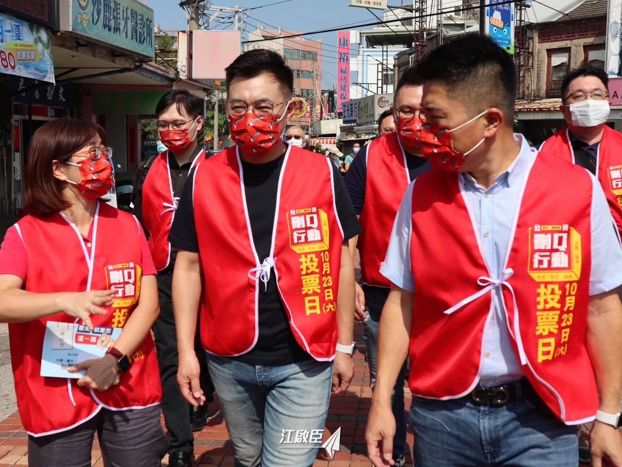 刪Q總部今天上午在沙鹿區觀音亭前舉行「罷免陳柏惟街頭宣講」活動,江啟臣偕同立委林奕華、台北市議員張斯綱、前高雄市新聞局長鄭照新到場,希望罷免成功,讓顏寬恒重返立院。