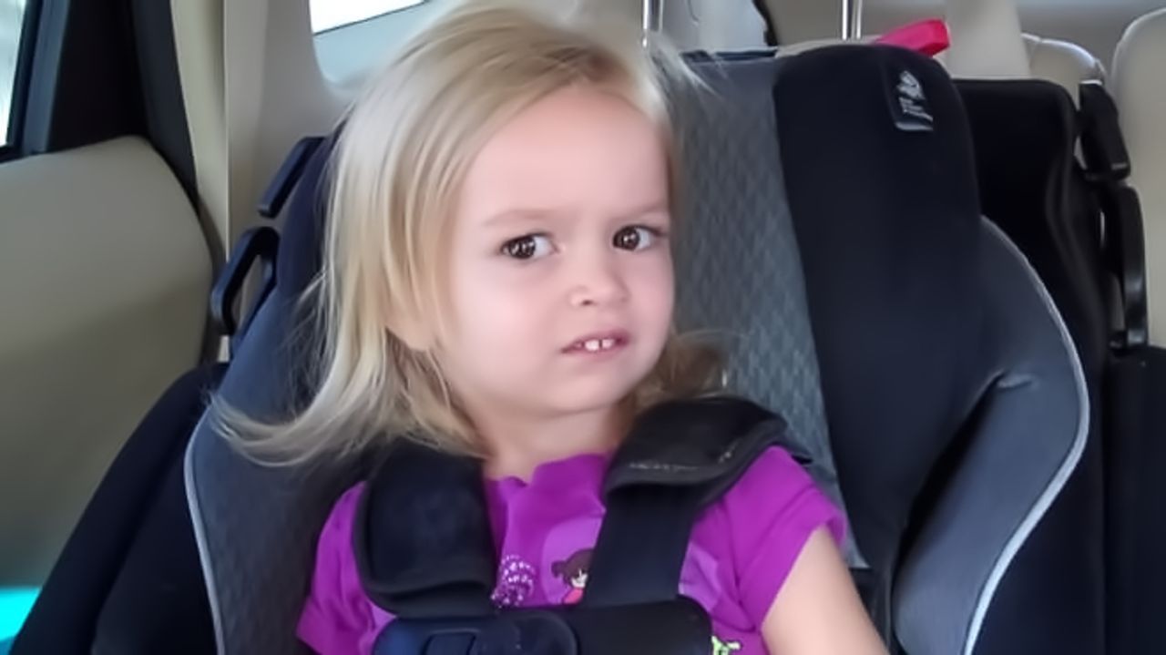▲美國3歲小女孩克羅伊(Chloe Clem)聽到要去迪士尼樂園反而皺起眉頭,被網友製作成迷因圖「Side Eyeing Chloe」爆紅。(圖/翻攝自YouTube/Lily & Chloe)