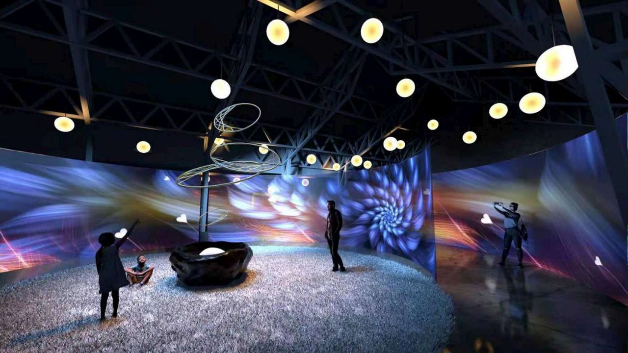 吳柏旻說明,展場為漩渦形設計,策展單位找到特殊「浮空紗」張掛,營造一個圓形沉浸式空間,投影機所投射的影像既能在這款紗幔上成相,並且能穿透,走入場域就能感受到柔風拂面的舒緩,讓新竹風帶你走入夢境;此外,展場中心有個「聚思盆」,代表人類潛意識核心,當盆中起了微風時,整個空間就幻化出一個夢境,「這件作品除了運用科技,還融入『解夢心理學』」,創作出三種象徵不同意義的夢境,包含花蝶舞彩、冉冉升騰、千川百魚。