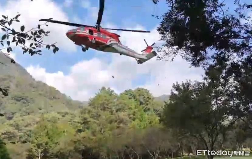 ▲男登能安縱走墜谷亡,空勤出動吊掛遺體下山。(圖/記者高堂堯翻攝)