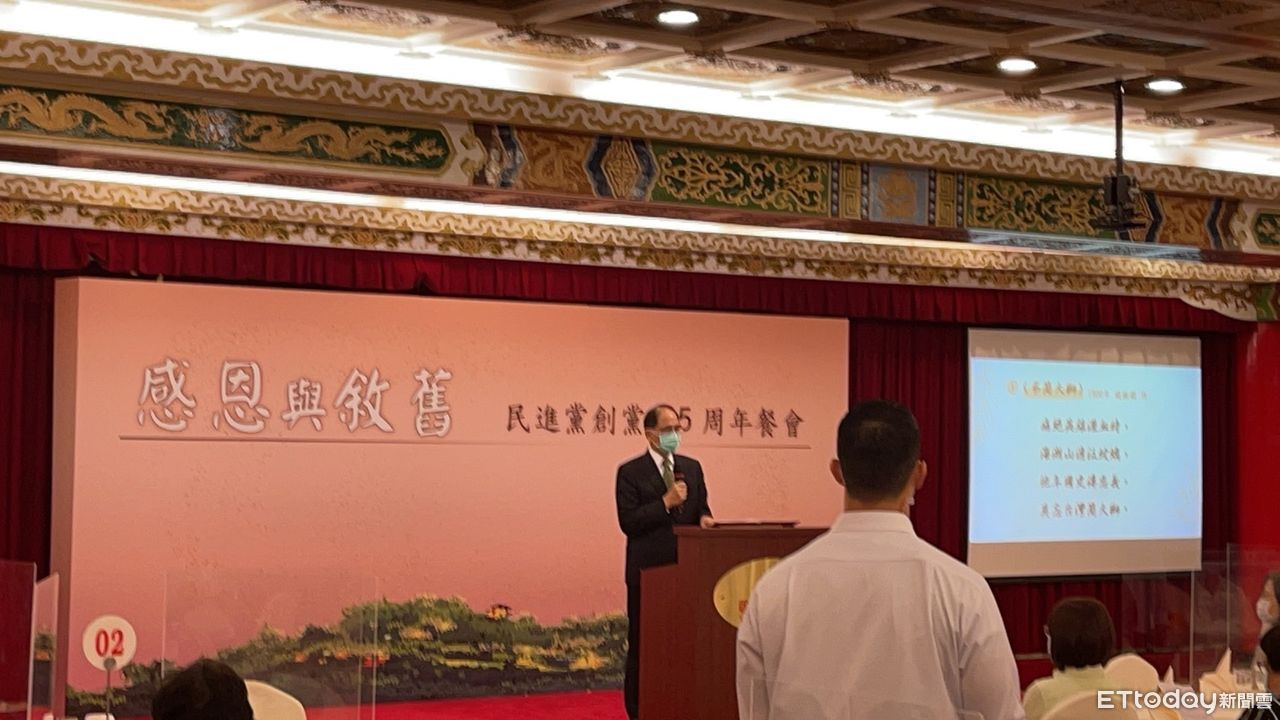 ▲立法院長游錫堃上午出席民進黨創黨35週年餐會。(圖/記者陶本和攝)