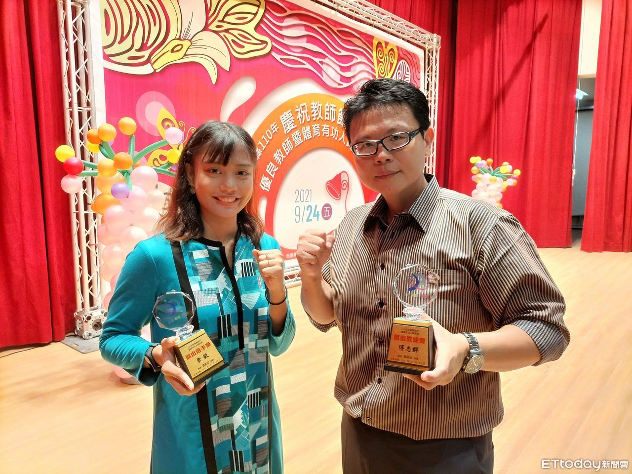 ▲內埔農工拳擊隊的李敏獲傑出選手獎,旁邊是教練傅志群 。(圖/記者陳崑福翻攝,以下同)