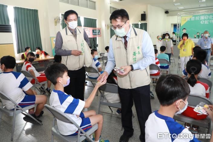 ▲公費流感疫苗1日起開始接種,台南市長黃偉哲前往安定區南興國小,關懷宣導接種流感疫苗之重要性。(圖/記者林悅翻攝,下同)