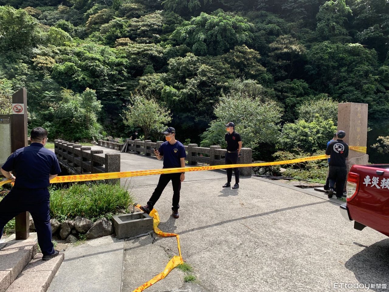 ▲新北瑞芳蜂群咬人釀5傷,目前現場已拉起封鎖線。(圖/記者郭世賢翻攝)
