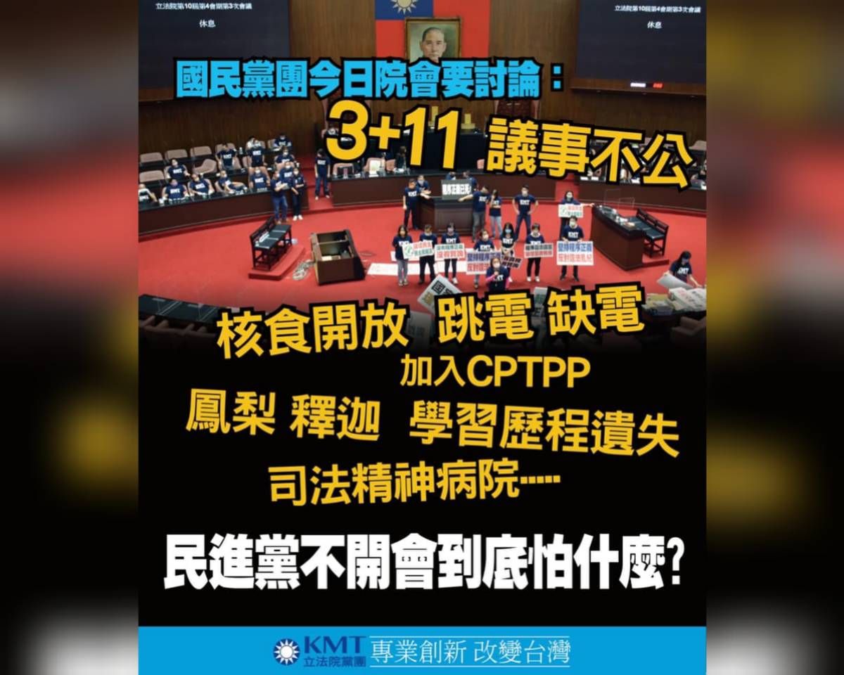 陳玉珍透過臉書表示,這次國民黨團提出的195個關乎國計民生、人民在乎的討論議題,包括學習歷程檔案遺失、台電缺電跳電、釋迦蓮霧的出口受阻、加入CPTPP、超商女店員遭挖眼相關的精神衛生法、強制治療、司法精神病院、建立社會安全網等議題,每件都是近來發生的大事,當然值得在立法院按照議事日程列入逐案討論,要求督促行政部門改進,做的不好的也當然要請行政部門道歉。
