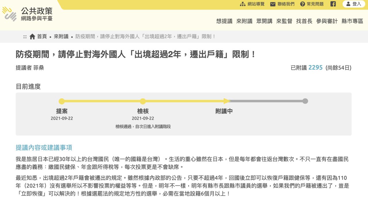 ▲台商疫情2年沒返國快被除籍,怕「投不了縣市長」提案求解套。(圖/翻攝公共政策網路參與平台)