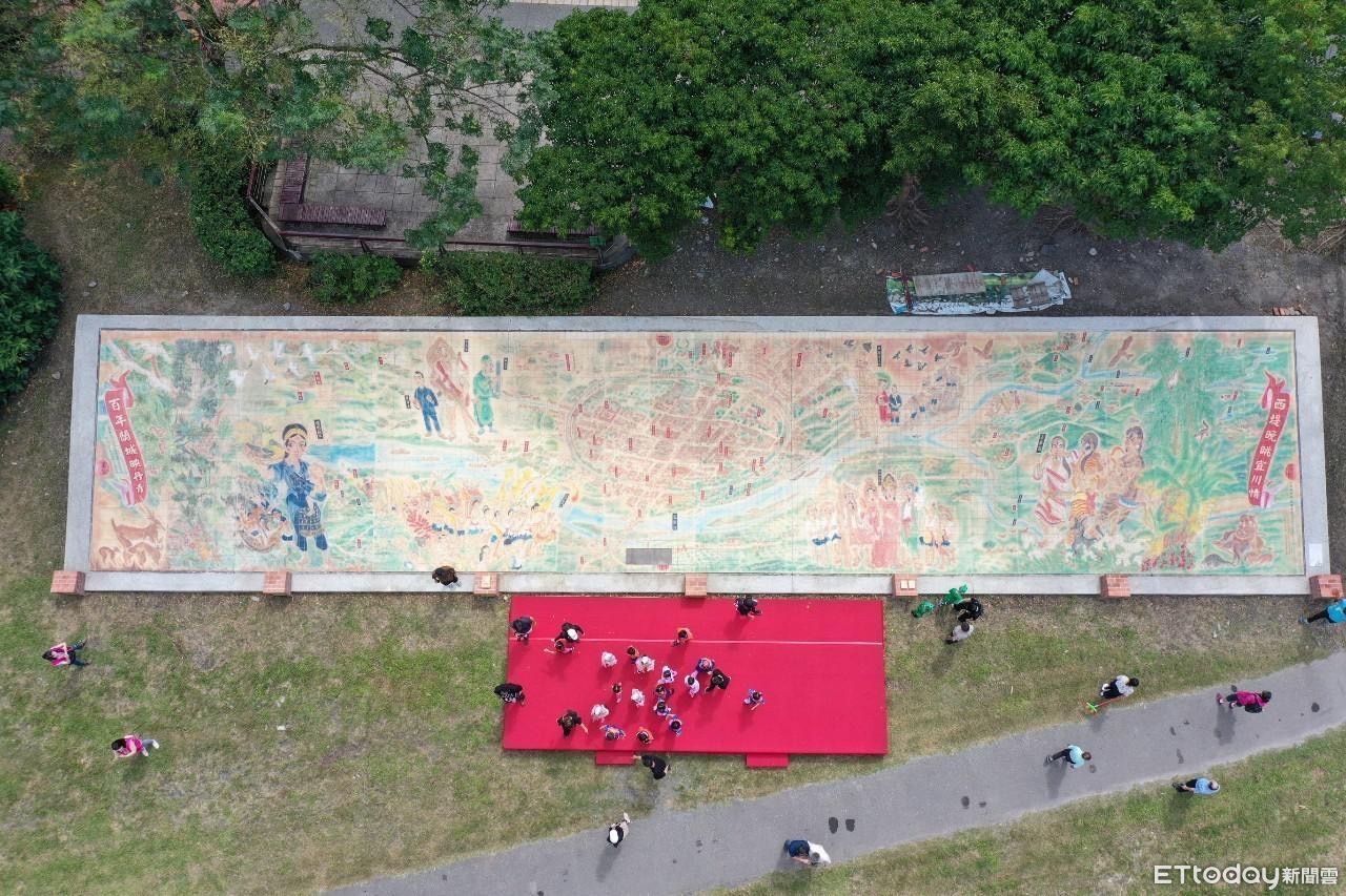 ▲宜蘭河新景點的「西堤晚眺」陶雕壁畫4日亮相。(圖/記者游芳男翻攝,下同)