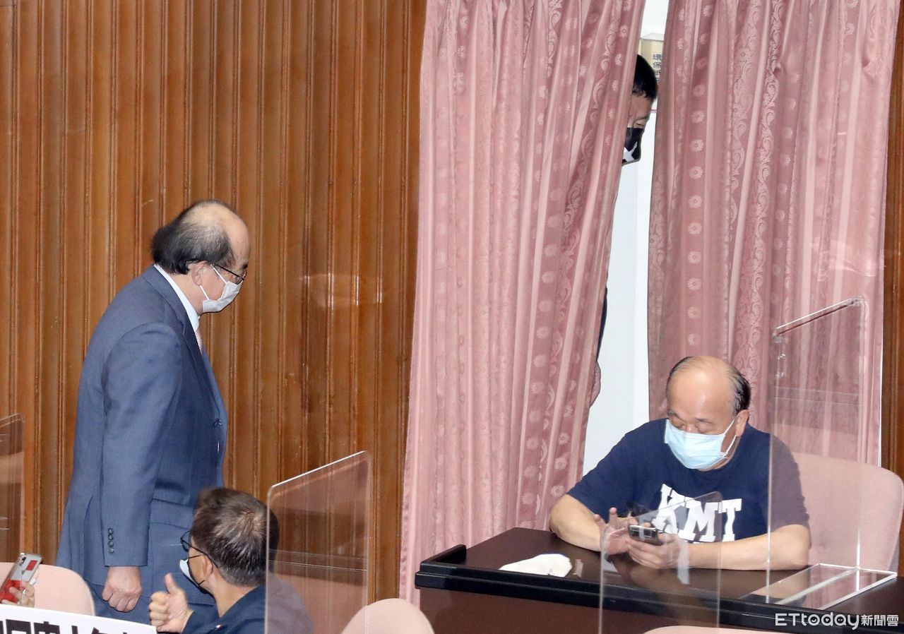 ▲柯建銘(右)在與費鴻泰(左)溝通期間,不時把手指向另一側的質詢台。(圖/記者屠惠剛攝)