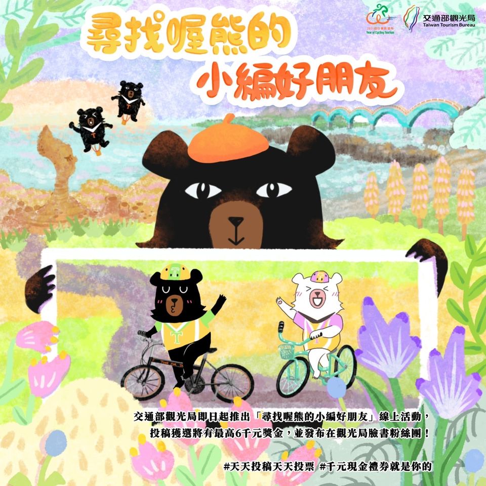 近年來騎乘自行車旅遊日益熱門,交通部觀光局將今年定為自行車旅遊年,即日起至11日推出「尋找喔熊的小編好朋友」線上活動,徵選「16條自行車路線」主題圖文,投稿獲選最高有2,000元現金禮券。