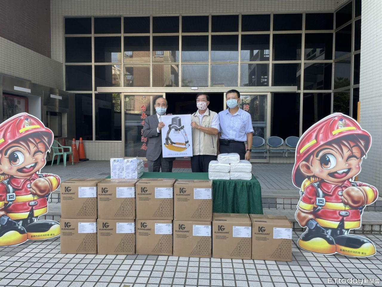 ▲財團法人消防發展基金會的總會長、前立法院院長王金平等人,捐贈價值約274萬5千元的防疫救護裝備予台南市消防局,由消防局長李明峯代表受贈。(圖/記者林悅翻攝,下同)