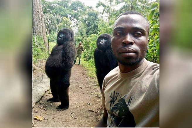 根據《太陽報》報導,位在剛果維龍加國家公園(Virunga National Park)的大猩猩達卡希(Ndakasi),在2019年和保育員玩自拍照,照片曝光後轟動全球,被譽為是最會自拍的大猩猩。