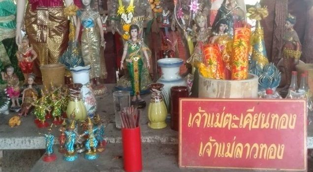 妻子越發覺得不對勁,懷疑丈夫在釣魚時觸怒了神靈,因此隔天一早就買來蠟燭、祭品等物,和丈夫一起到廢棄學校旁的神壇拜拜。到了神壇後,譚諾普突然指著一尊女鬼的雕像表示,他見到的就是這名女子,於是妻子帶著丈夫下跪道歉,丈夫才慢慢地恢復正常。