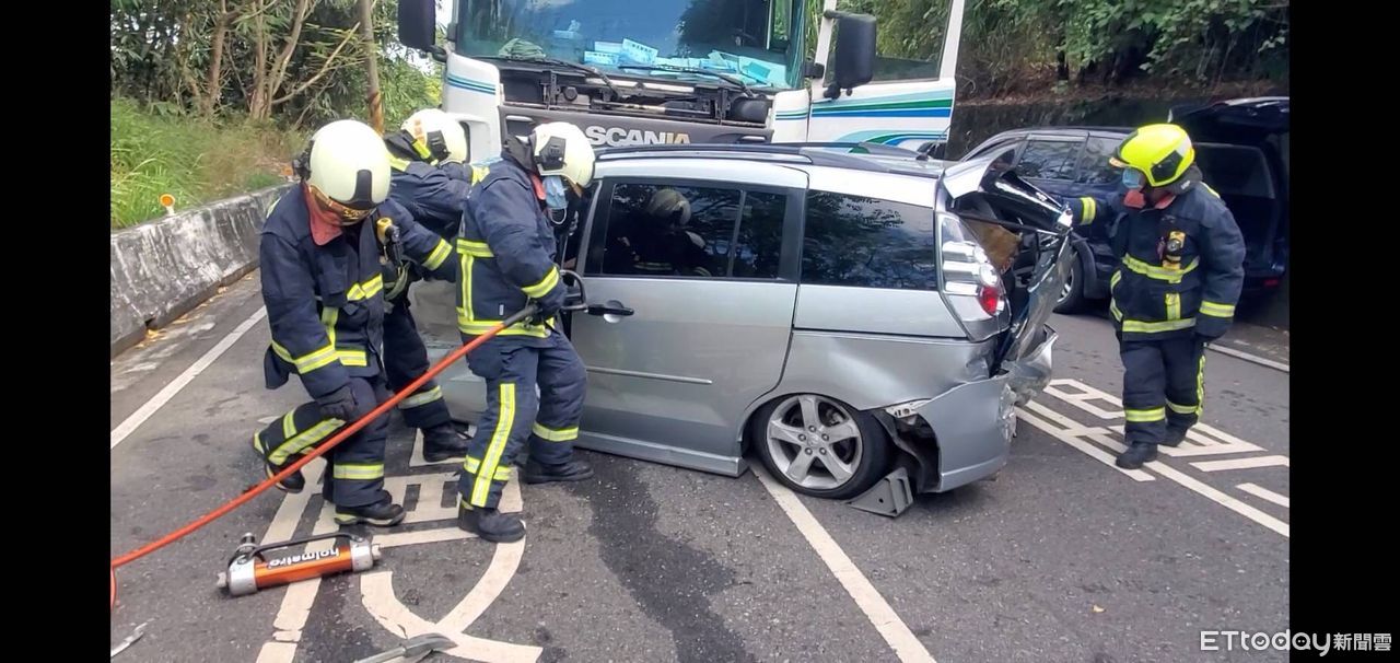 台中市北屯區東山路二段今(11日)上午9時許發生一起車禍,事發當時一輛聯結車疑煞車失靈,逆向追撞4輛自小客車,一共造成5人受傷。警消獲報後立即派員到場搶救,目前5名傷者均意識清楚,分別送醫救治當中。至於詳細車禍原因,仍有待調查釐清。