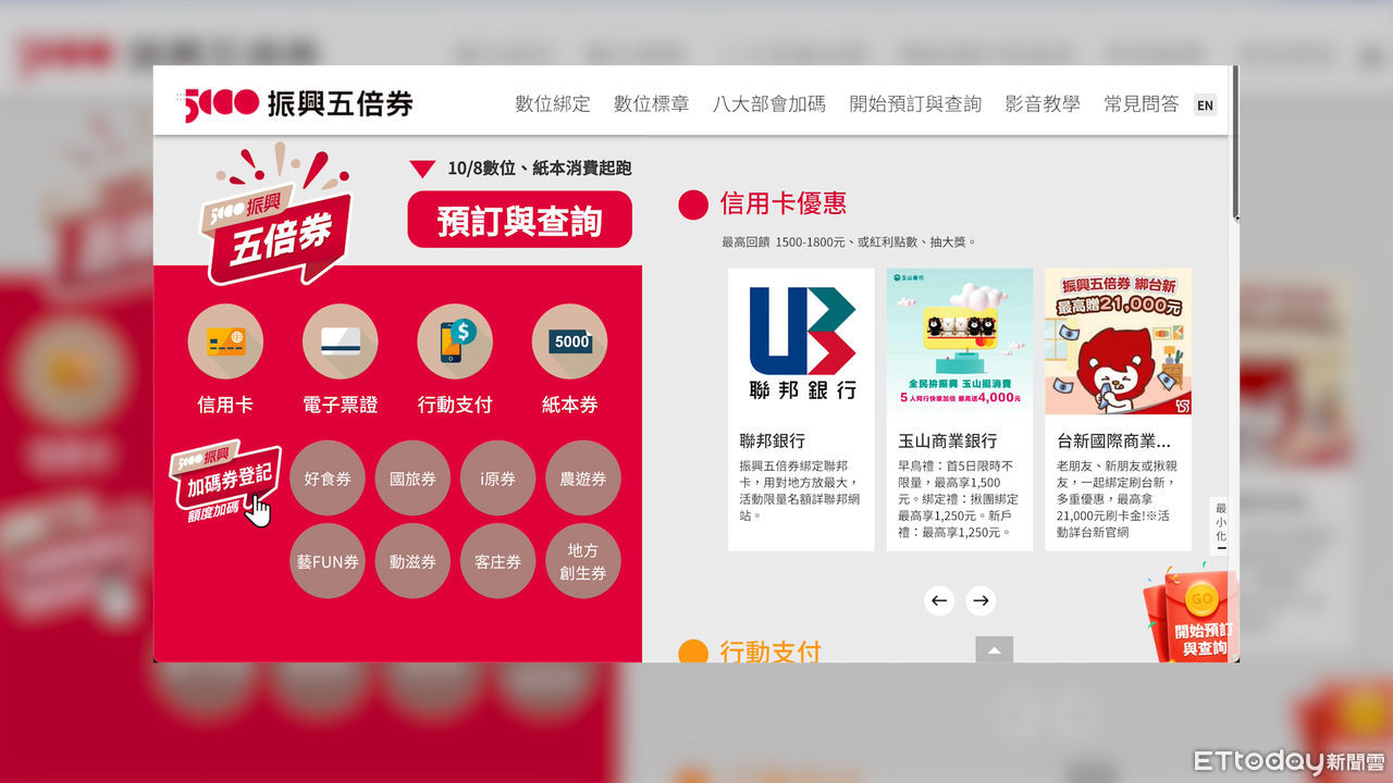 ▲▼10/29前數位綁定五倍券不用抽籤就能領500元好食券,還有多家銀行配合推出優惠。(圖/記者 謝盛帆攝)
