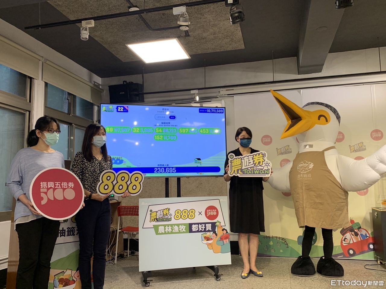 農委會配合行政院五倍券加碼,祭出每張面額888元「農遊券」,連續4週抽出88萬份!今(13 日)上午10點30分首抽約22萬份,現場準備樂透機和彩球,抽出身分證後2碼或3碼「89」、「32」、「54」、「597」、「453」、「152」,總計230,695人可獲得農遊券。幸運中籤者,下午5點就會陸續收到簡訊通知;而未中籤者也別氣餒,只要登記,未來三週還有3次抽籤中籤機會!