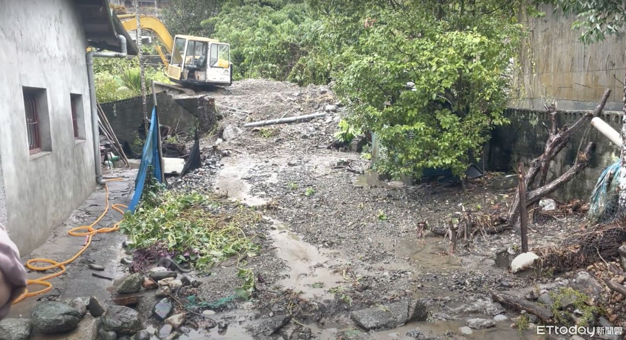 屋主表示,住家後方的擋土牆已經有30年歷史,應該是基礎沒有弄好才會倒塌,後續自行用怪手把倒塌石塊移開之後,才成功讓泥流轉向,不過他也擔心,牆壁的右側已出現大裂縫,可能會再發生一次崩塌意外。