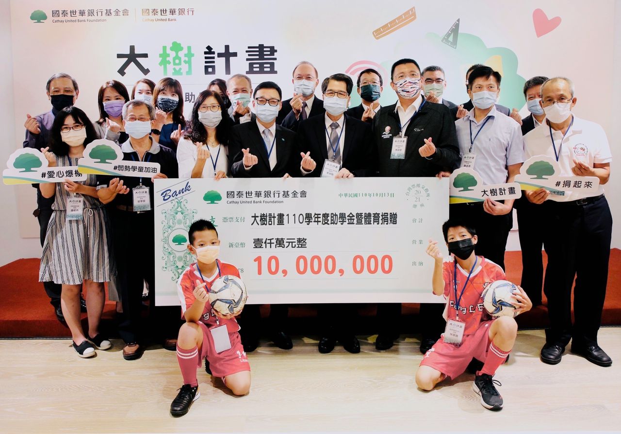 110學年度「國泰世華銀行基金會大樹計畫助學金捐贈典禮」於10月13日假國泰世華藝術中心舉辦,本學年度將提撥新台幣1,000萬元補助苗栗縣、屏東縣、宜蘭縣及台東縣,預估可受惠8,000名學童。國泰世華銀行基金會董事長李明賢致詞時表示:「《大樹計畫2.0》除持續提供弱勢學童助學金外,更擴大補助學校發展體育,贊助球隊更換設備,並鼓勵參與國內外體育競賽,期學童們培養自律與團隊精神,在競爭中提升自我能力。」