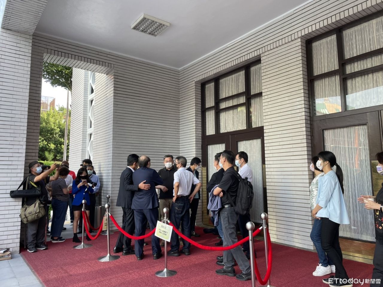 ▲民進黨團成員今天上午6點就集合,在議場門口排隊。(圖/呂晏慈攝,下圖同)