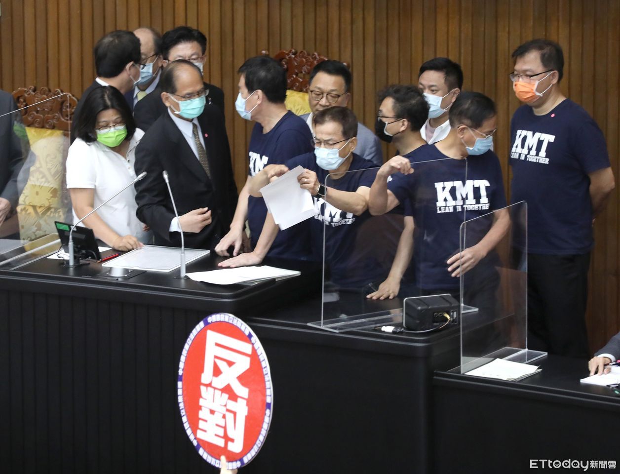 立法院今天再度邀請蘇貞昌進行施政報告總質詢,不過,國民黨團為杯葛蘇揆上台,陸續提出「散會動議」、「蘇貞昌列為國會不歡迎對象」、「國會議長應秉公處理官員脫軌行為」等提案,悉遭民進黨團以人數優勢否決,國民黨立委於是群起拍桌表達不滿。