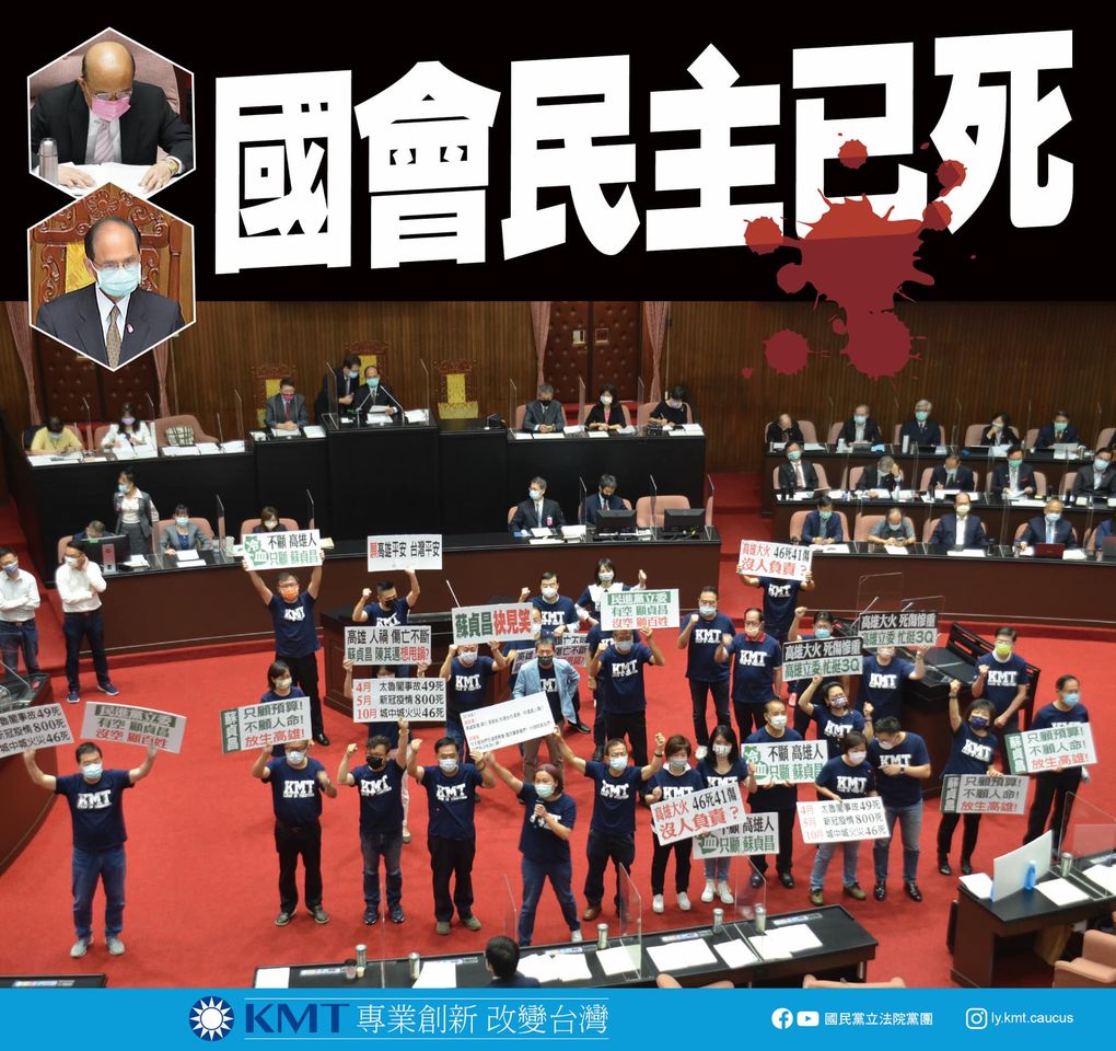 國民黨立院黨團強調,民進黨團更提議,「除符合會議規範所定權宜問題,並經院會主席裁示外,本次會議不再處理會議詢問、權宜問題、秩序問題、其他程序之動議或散會動議」,再次透過多數暴力的表決照案通過。民進黨團為了護航蘇貞昌,一切不演了。