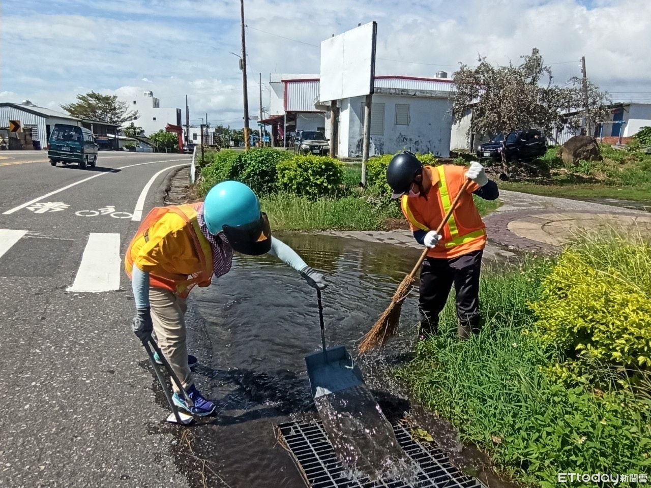 ▲清潔人員,進行溝渠清除廢棄物與雜物等。(圖/記者楊漢聲翻攝)