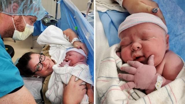 根據abc當地電視台報導,凱芮和提姆10月初生下他們的寶貝芬力(Finnley),她回憶孩子出生時接生間醫護們的反應,全部人都不敢相信芬力不僅很重,還長得非常高大,體型幾乎就像一個一歲小孩。雖然醫師當初在幫凱芮照超音波時,就已經告訴他們「這個小孩會很大」,但連他也沒想到原來這麼巨,從業27年來沒看過這麼大的嬰兒,很快醫師就和護師紛紛拿出手機,要和他們一家合照。