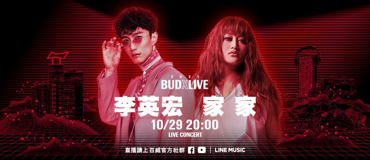然而最後一場LIVE CONCERT可不能再錯過了!今年百威「BUDXLIVE」的壓軸,特別重磅請來最潮嘻哈水哥李英宏與靈魂天后家家合體直播!這個組合的消息一釋出,就讓兩邊的粉絲瘋狂敲碗一整個月,與其和網友比賽預測他們會帶來哪些曲目,不如先把行事曆設定好,家裡的投影機、藍牙喇叭/耳機充好電,娛樂室的桌上當然還要有一手百威,10/29晚上8點準時在百威官方社群及LINE MUSIC平台上加入直播,讓嘻哈水哥和靈魂歌后點燃聽團仔們的小宇宙!