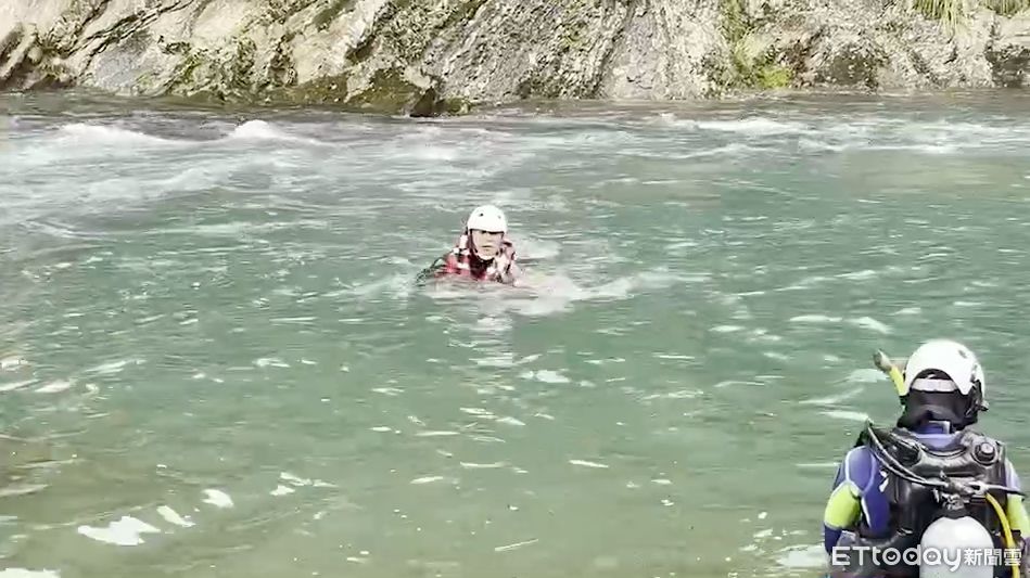 ▲救難人員重裝潛入潭底搜索 。(圖/記者陳以昇翻攝,下同)