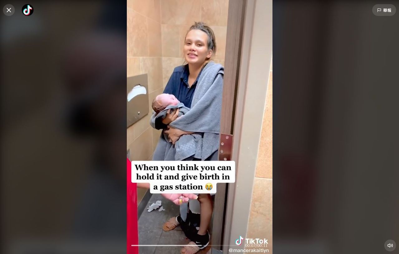 ▲美國一名女子獨自於廁所內生下小孩。(圖/翻攝自Tiktok@Mancerakaitlyn)