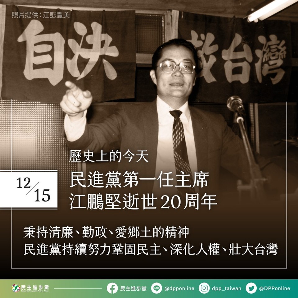 ▲民進黨江鵬堅前主席逝世20周年。(圖/翻攝民進黨臉書)