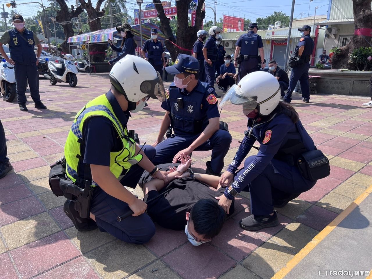 ▲東港警分局在鎮海宮進行迎王祭前快打演練 。(圖/記者陳崑福翻攝,以下同)