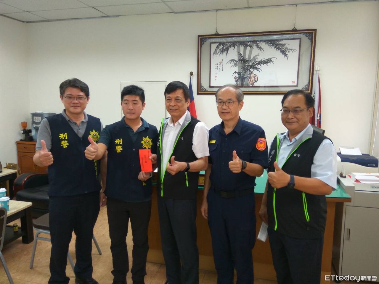 ▲台電新營區處處長張簡宗瑜為表示謝意,特地於20日上午到白河分局拜會陳明宏分局長,並頒發破案獎金6萬元。(圖/記者林悅翻攝,下同)